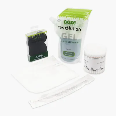 It’s never been easier to keep your pieces clean at all times thanks to the Ooze Resolution Spotless Cleaning Kit. This upgraded version of the kit includes the new Precision Micro Swabs that are pre-soaked in alcohol, plus a pouch of Res Gel cleaner, 4-pack of silicone Res Caps, a stick brush, and a Res Rag.