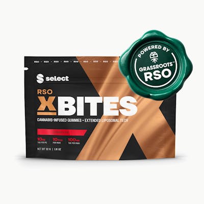 Select delivers another cutting-edge fan favorite with RSO XBites. Enhanced with Grassroots Full Spectrum RSO, this Xtremely delicious bite provides a punch of sweet flavor and a full spectrum of plant benefits in edible form. Add in our proprietary Extended Liposomal Technology, and you’ve got a full spectrum RSO edible that is quicker hitting, stronger, and longer lasting. Welcome to cannabis elevated.