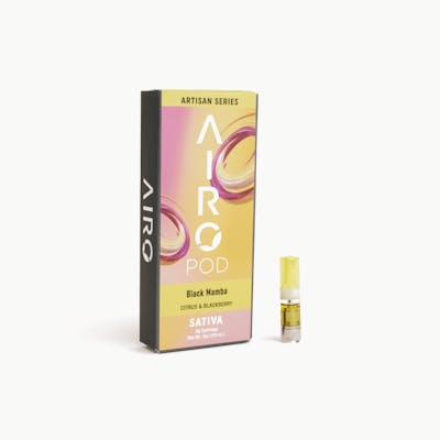 Citrus & Blackberry Named for its delicious flavor, Black Mamba ensures its blackberry citrus flavor slithers through your body. As soon as the flavor bites your palate, this Sativa dominant strain will have you awakened and ready to rule your jungle. AiroPod Cartridges are only compatible with the AiroPro and AiroSport Vaporizer.