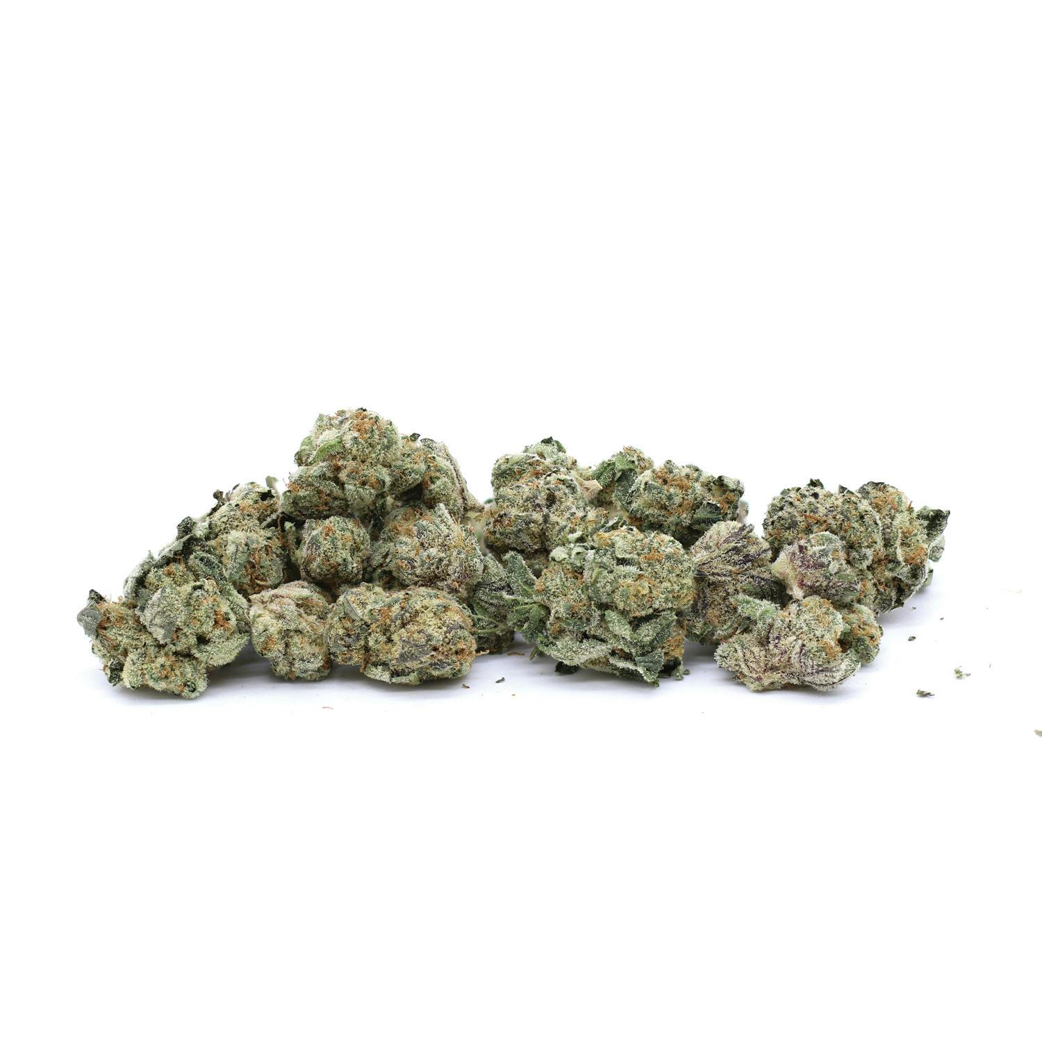 Type: Hybrid Lineage: White Runtz x Banana Cake Aroma: Sweet banana, milky coconut, candied fruit, hints of berries Flavor: Sweet and smooth fuel, spicy pepper, ripe mango, floral notes, herbal finish Experience: Intense euphoria, mental stimulation, tingly and soothing body buzz Possible Medical Benefits: May help with chronic pain, depression, stress, muscle spasms Dominant Terpenes: Limonene, b-caryophyllene, b-myrcene, linalool, b-pinene