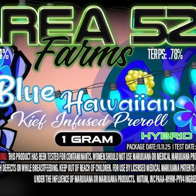 Area 52 | Blue Hawaiian | THC: 24.00% TERPS: 0.78% | 1G Kief Infused Pre-Roll (Tax Included)