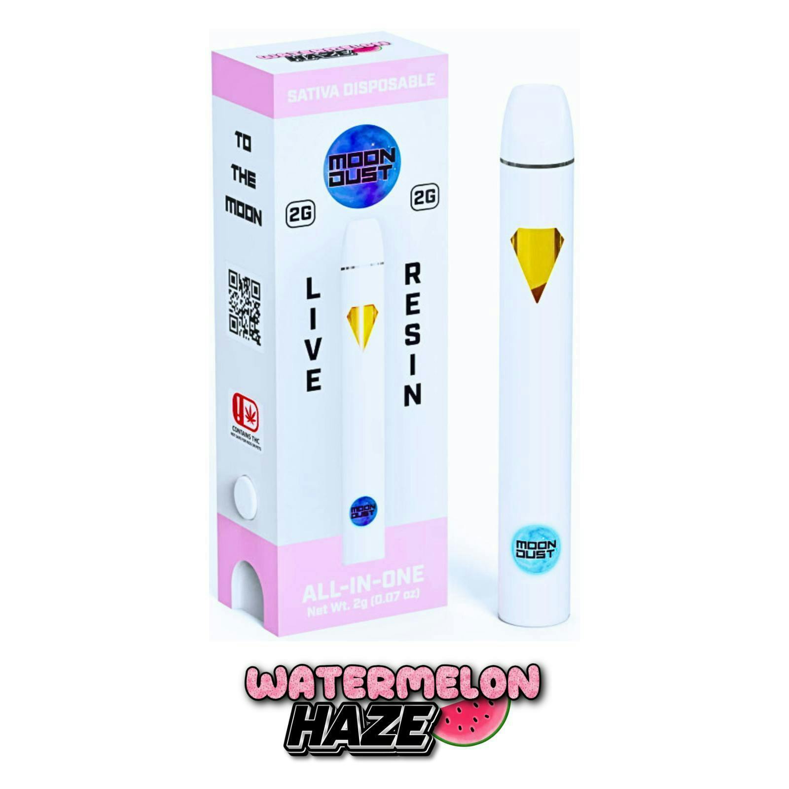 Indulge in the ultimate vaping experience with Moon Dust's 2g Watermelon Haze Sativa Live Resin Vape, crafted for connoisseurs who demand purity, potency, and unparalleled flavor.
