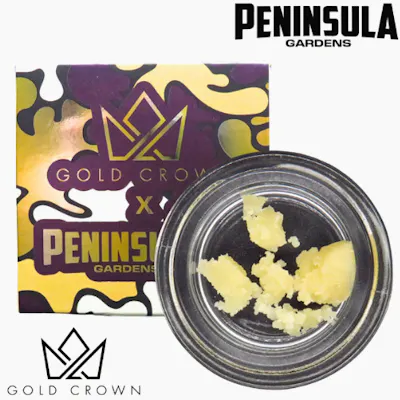 Gold Crown X Peninsula Gardens | Electric Peanut Butter Cookies | Crumble | 1g A premium Michigan collab bringing rich, dessert-style flavor into smooth budder form. Electric Peanut Butter Cookies is a hybrid born from San Francisco Cookie Cut x Gorilla Butter, known for its nutty, citrus, and earthy terp profile. Expect creamy peanut butter notes layered with subtle lemony brightness and kush-like depth. The experience starts with an uplifted, euphoric headspace before settling into calming body relaxation — making it perfect for evening use when you want to unwind without feeling completely stuck.