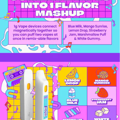 Make a Mix with Midweek Friday Mixy Vapes!: * Featuring remix-able flavors like Blue Milk, Mango Sunrise, Lemon Drop, Strawberry Jam, Marshmallow Puff & White Gummy, MWF offers you the chance to make a flavor mashup all your own. * New vape hardware technology allows each 1g vape to be magnetically connected to another for a 2-in-1 flavor mix explosion with twice the puffing power! Puff Puff Yasss! Our 1g rechargeable all-in-one vaporizers are the bomb! Pass them around and try out different strains and flavors. They're filled with top-notch cannabis oil and flavorful terpenes, perfect for sampling on the go and adding some spice to your midweek celebration. Get ready to puff your way to a good time! Don’t forget: Sharing is Caring!---