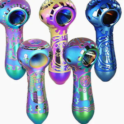 Geo Neo Electroplated Glass Spoon Pipe | 4" Disclaimer Legal herbal use only, NOT for tobacco. These 4 inch (10.2cm) long Geo Neo Spoon Pipes are perfect for bringing a bit of vibrant color to each smoke session!