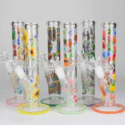 10" GLOW-IN-THE-DARK CARTOON STRAIGHT TUBE BONG - 10" Glow-In-The-Dark Straight Tube Bong - Assorted