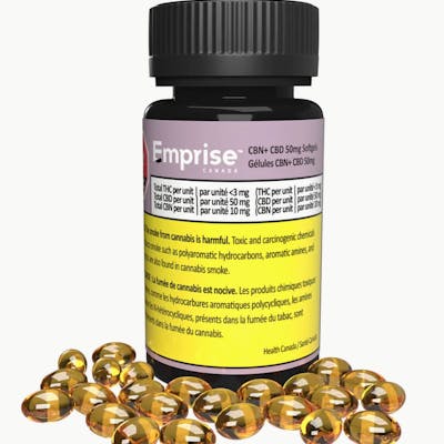 CBN+ CBD 50mg Softgels is a CBN and CBD-dominant formulation. Each softgel delivers 10mg CBN and 50mg CBD. Made with concentrated CBN and CBD distillate with coconut-derived MCT oil. Each bottle contains 30 softgels (300mg total CBN and 1500mg total CBD).