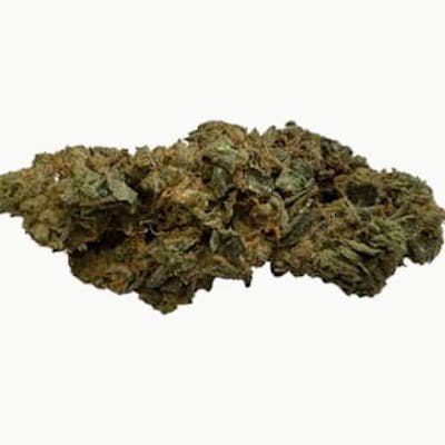 This cultivar of high-potency, hybrid flower is a cross between Black Mountain Side x GMO. Terpene profile includes caryophyllene, limonene, isoborneol, and ocimene, giving a balanced blend of fresh citrus, cinnamon spice, and gas. Frosty, well-formed bud with distinct crystal.