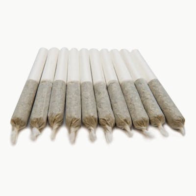 Ghost Train Haze has a sweet and piney aroma, with notes of earth and pepper from its terpene profile of beta-caryophyllene, beta-pinene, and terpinolene. This sativa-dominant strain has thick, dense buds blanketed in crystal-capped trichomes. This pack of 10 0.35g pre-rolls is made with gently milled flower, not trim or shake.