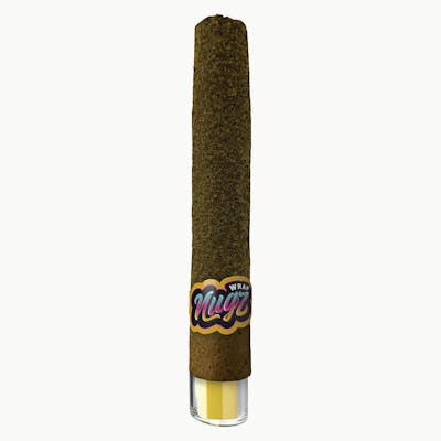 Nugz Wrap - Kingpin Indica is a one-gram of rotating, indica-dominant whole flower ground to perfection, mixed with cultivar-specific, BHO cured resin, wrapped in a 100% hemp wrap and coated in cultivar-specific kief.