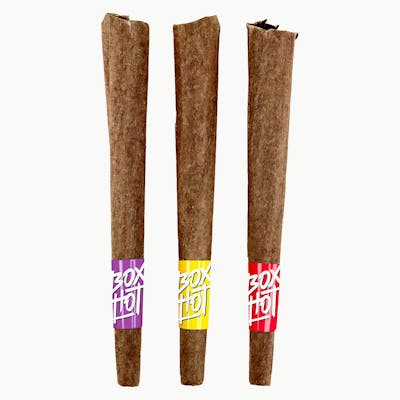 Want to sample the whole BOXHOT Exotic Fatties buffet? Try all three of these succulent 1g infused pre-rolls in this tropical multi-pack Guava Stardawg, Tropicana Banana, and Mango Vortex! All BOXHOT Fattles feature over 30% THC and over 5% terpenes. All BOXHOT Fatties are produced with high-quality infused flower in chamomile wraps.