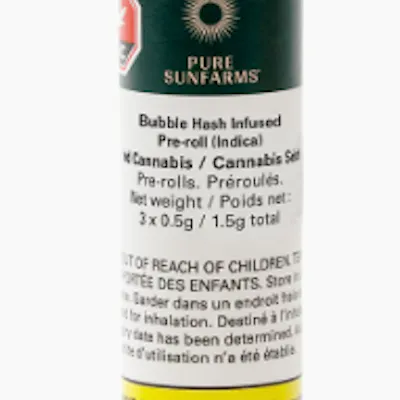 Aromatic whole flower is infused with high purity, full-melt bubble hash to create a smooth smoking, potent pre-roll. Each Pure Sunfarms Bubble Hash Infused Pre-Roll is packed with indica-dominant Black Cherry Punch, known for its rich cherry aromas