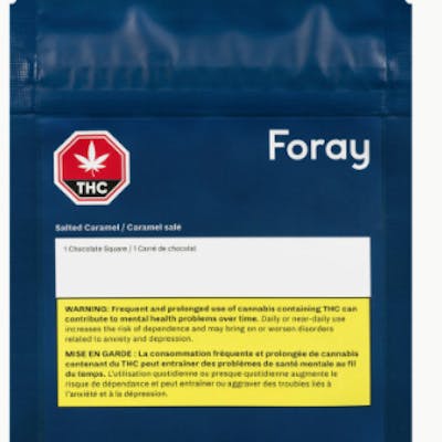 • Foray Salted Caramel Chocolate Squares offer a delicious and discreet way to consume cannabis. Our chocolates are designed using cannabis distillate; thereby, removing noticeable cannabis taste and smell. Foray chocolates are developed by the former head of Canada’s Smartest Kitchen, renowned for developing cutting-edge food products and ingredients. Our chocolate is sourced from one of the world’s leading chocolate suppliers. All of our chocolates contain traceable, natural ingredients. The cocoa in Foray Salted Caramel Chocolates Squares is derived from a Belgian/Ghanaian blend.