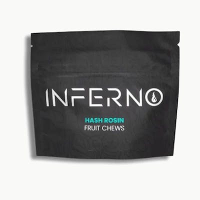 Inferno | Hashin’ Fruit Rosin Chews – Passion Fruit Fire in Every Bite | Amesbury & Haverhill, MA. Turn up your evening and wind down with purpose thanks to Inferno's Hashin’ Fruit Rosin Chews. Crafted using top-tier, solventless rosin and infused with real fruit flavor, these 20-pack chews are the perfect choice for a flavorful and potent cannabis experience.