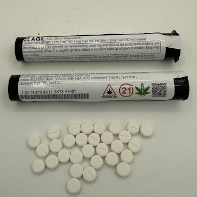 Advanced Grow Labs’ Micro Tablets 30-pack offers a discreet and precisely dosed option for cannabis consumption, ideal for those seeking consistency and control in their daily routine. These compact tablets are formulated for ease of use, with each piece delivering a measured dose designed to support microdosing preferences. Whether for gradual titration or low-dose integration, AGL’s micro tablets are created with pharmaceutical-grade standards, ensuring purity, uniformity, and convenience. Packaged in a tamper-evident container with a 30-count supply, these tablets reflect AGL’s ongoing commitment to reliable, science-forward cannabis products tailored to the modern consumer.