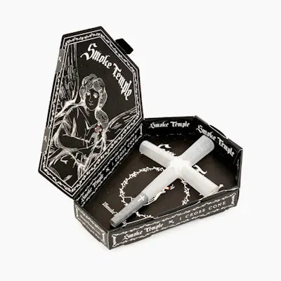 The Smoke Temple pre-rolled cross-cone is truly a work of art and will elevate any smoke sesh to the next level! Able to hold up to 3 grams of flower, simply remove the paper insert from the middle and sides of the cross cone, fill with cannabis, and then ask a friend to help you light all 3 sides at once!