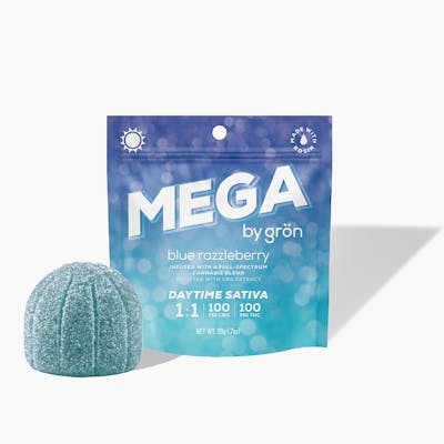1:1 Blue Razzleberry Mega Pearl (100mgTHC/100mgCBG)