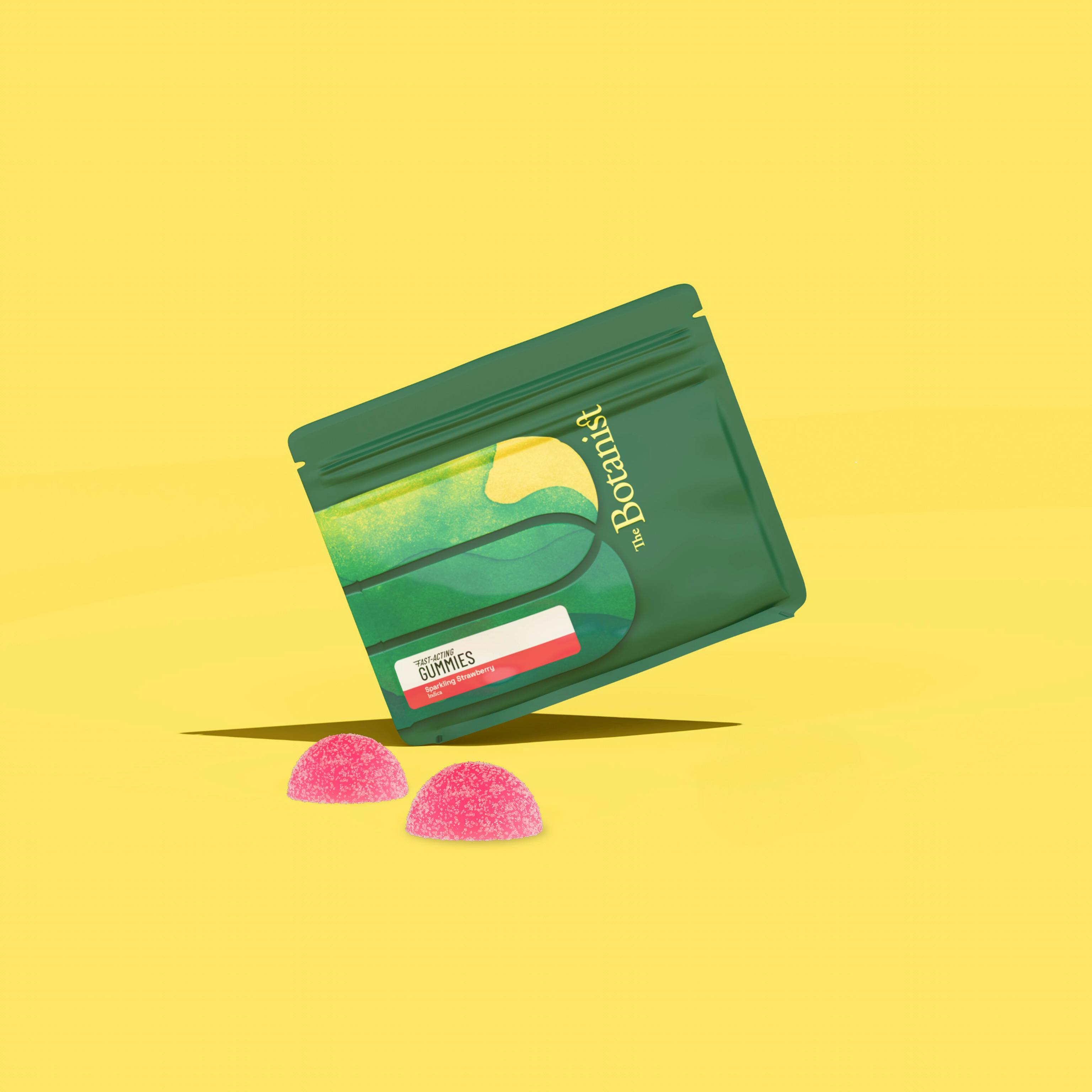 CBG: 0.21mg/g | THC: 94.48mg/g | THC9: 9.45mg/g -- Add some sparkle to your life with a burst of sophisticated strawberry flavor enhanced with Indica cannabis terpenes and fast-acting THC.