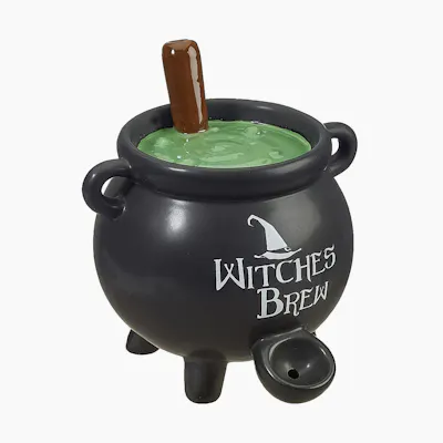 Brew up some Witchy magic this holiday season with our new Witches Brew on-trend pipes. They make great gifts for anyone interested in witchcraft! This unique and trendy novelty pipe is made of ceramic. It comes in a brilliant black color. The pipe has white letters that read "Witches Brew" on the front, with a witches hat on top. Inside, is a green potion that is being stirred by a paddle. Attached to the front of the cauldron is a pipe where you can pack your tobacco and light it. The smoke filters up the hollow stirrer to the mouthpiece on the top, allowing you to enjoy a smoke with a difference. The pipe comes packaged in a gift box. This product is recommended for adult use only. Size 4 3/4 x 5 x 5" Made of ceramic Brilliant black color White letters read "Witches Brew" with a witches hat on top Green potion inside stirring with a paddle This product is recommended for adult use only