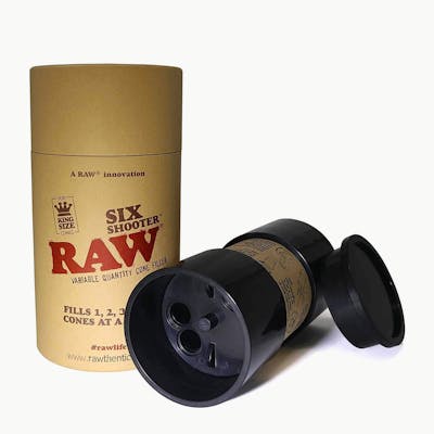 Can roll one, two, or six RAW cones in less than one minute! The Six Shooter gives you the luxury of filling pre-rolled cones without making a mess or wasting herbal blend in the process. Also serves as a cone storage. -- This Six Shooter is loved by all kinds of people for its ease of use, simply load up your pre-rolled cones and you are almost done! Pack in your smoking content tightly and done. Requires minimum effort and produces maximum comfort.