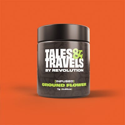 THC: 25.14% | THC9: 0.75% | THCA: 39.22% -- Michigan brings out the frost, courtesy of Fresh Coast Seed. Frost Donkey BX1 is a Sativa-dominant cultivar selected for its energizing and euphoric effects that pair with a spicy, piney flavor profile. Expect this to be one of the more visually appealing flowers in your rotation with dense nugs coats in trichomes. Turbocharge your sessions with Tales & Travels 7g Infused Ground Flower, made with THCa to pack a serious punch in every pinch. Perfect for the high-tolerance toker 🏋️ who wants to keep their puffs beefy but their routine easy. No grind, all glory! 🏆 Tales & Travels is the spunky little sibling of the award-winning Revolution Cannabis. We're affordable, full of character(s), and know how to blend our big sister's expertise into a fun mix of THC goodies - perfect for everyone from the canna-curious to the canna-chronic. WEED got something for everyone. revcanna.com