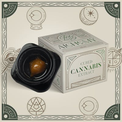 1G: CBGA: 2.35% | THC: 74.28% | THC9: 4.4% | THCA: 79.67% -- 1G: CBGA: 2.35% | THC: 74.28% | THC9: 4.4% | THCA: 79.67% -- "ALCHEMY uses the enlightening practice of conjuring highly potent and divinely flavored cannabis concentrates through the philosophy of traditional curing and drying. The result is an extract that is terpene mature and cannabinoid rich with enchanting effects so you can STAY MAGICAL! Experience the unique fusion of flavors and effects with Garlic Mash, a captivating indica-dominant hybrid that combines the best of Garlic Mash GSC and Chemdawg. This strain is designed for those seeking a deep sense of relaxation and tranquility, making it the perfect companion for winding down after a long day. With its rich terpene profile featuring Myrcene, Caryophyllene, and Limonene, Garlic Mash envelops you in a savory aroma that blends earthy garlic notes with hints of spice and citrus, creating a truly distinctive sensory experience. Garlic Mash delivers a soothing high that eases tension and promotes a sense of calm. Whether you’re settling in for a cozy night at home or enjoying a quiet evening with friends, this strain is your ideal partner for relaxation and introspection. So, light up, take a deep breath, and let Garlic Mash guide you to a state of blissful serenity. Perfect for evening use or moments of self-care, this strain is sure to elevate your relaxation game.