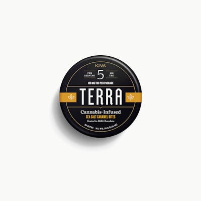 THC: 95.4mg/g | THC9: 1.91mg/g -- THC: 95.4mg/g | THC9: 1.91mg/g -- Sea Salt Caramel Terra Bites boast delicious, rich and smooth caramel centers coated in creamy milk chocolate and sprinkled with Pacific sea salt. These bites have a sweet, buttery flavor that finish with a salty kick. -- Ingredients: Milk Chocolate (Sugar, Cocoa Butter, Milk, Cocoa Mass, Sunflower Lecithin, Vanilla), Tapioca Syrup, Sugar, Cream (Milk), Palm Kernel Oil, Sea Salt, Gum Arabic, Cannabis Extract, Natural Flavors, Confectioner's Glaze, Sucrose, Glucose Syrup. -- Allergy Warning: Contains milk. May contain nuts, soy and gluten.