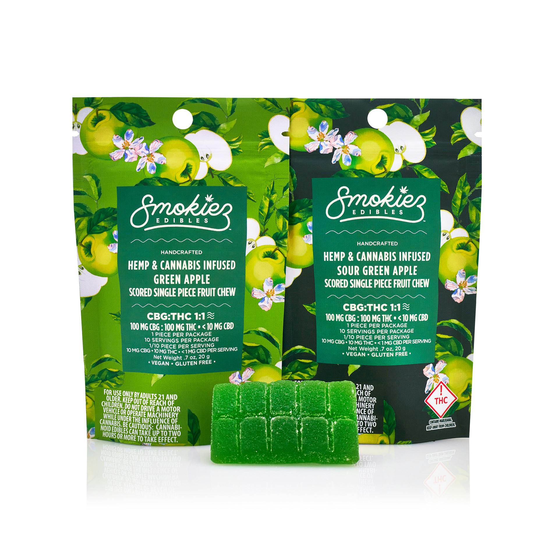 Smokiez Fruit Chew Singles - Sour Green Apple 100mg 1:1 (THC/CBG)