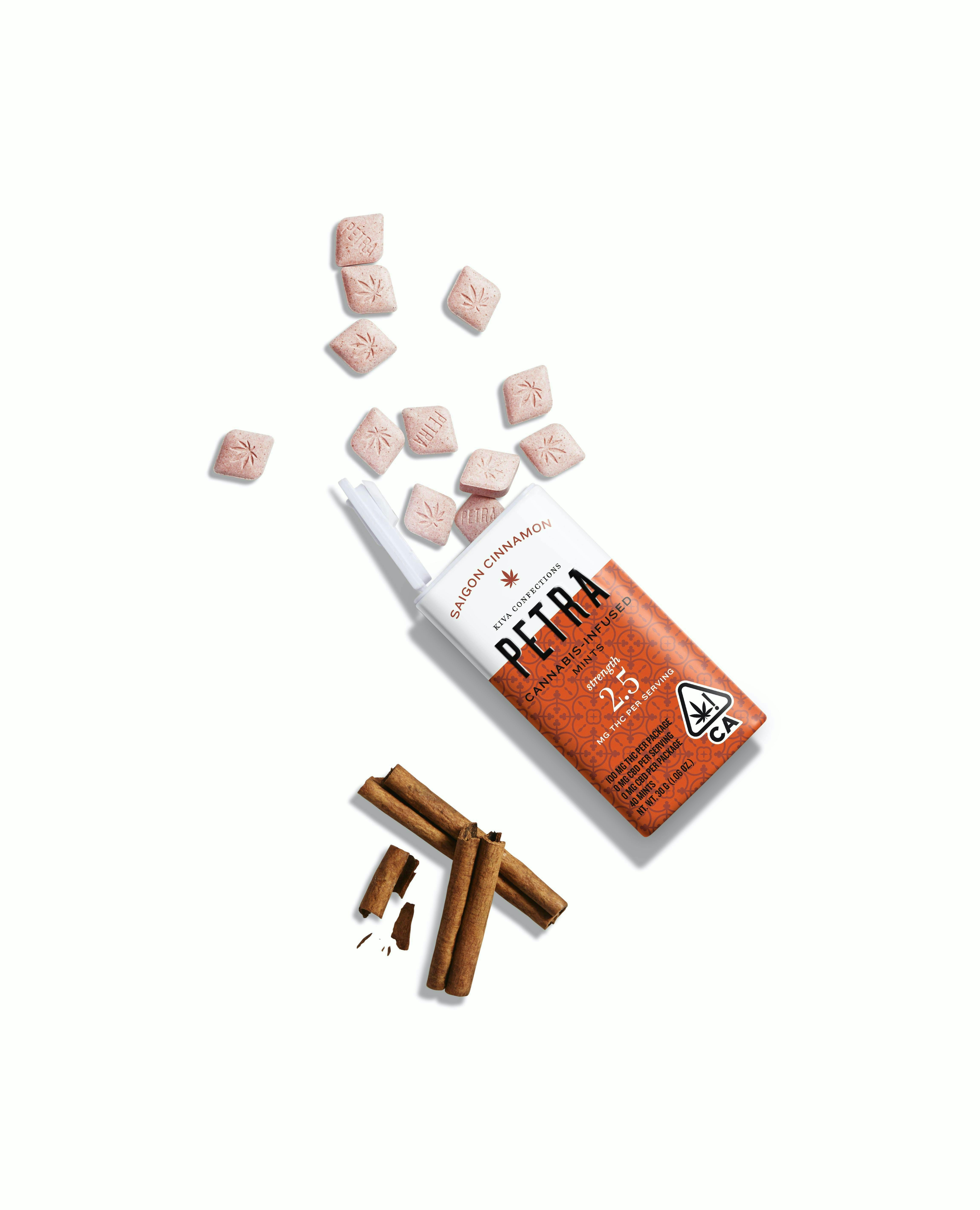 Sweet and spicy with just a touch of heat, Saigon Cinnamon Petra freshens your breath and warms your senses. Highly portable, decidedly poppable, and subtly powerful, this low-dose, sugar-free and vegan mint is subtly dosed for an optimal cannabis experience every time. Whether spicy, sweet, savory or strong, Petra has a flavor that everyone can savor. Since 2010, Kiva’s goal has been to create an edible that redefines what a cannabis confection can be. From our artisanal approach to making chocolates to our inventive take on gummies, we’ve dedicated ourselves to crafting delicious, trustworthy, and premium edibles you can feel good about eating. Made in a facility that processes milk, nuts, soy and gluten. (License No. CDPH-10002402)