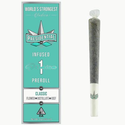 Your Presidential Preroll consists of Top-Shelf Organic Flower INFUSED with Premium Clear Distillate, then Coated in the Highest Quality Kief. Our innovative proprietary infusion process allows us to permeate the flower all the way to the stem.