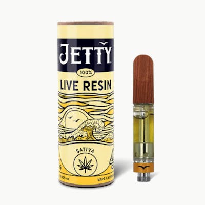 Jetty 100% Live Resin has a whole new look. We’ve improved oil clarity, boosted the potency, and sharpened the flavor for a whole new experience. We removed the fats and waxes that clog your vape, ensuring a smooth smoke from start to finish. With our specialized purification processes, every puff delivers the true essence of the plant, offering a pure and bold flavor that stays great all the way to the end of your cart. Jetty Extracts invites you to explore, rise, and TAKE FLIGHT with our expertly crafted 100% Live Resin. Now ECCO Certified. Look for the Jetty signature upcycled wood tip and our premium EVOmax Ceramic CCell cartridges. Customize your temp with any 510-thread battery.