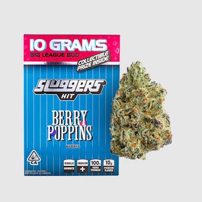Cultivation: Indoor+ | Trim: Hand-Trimmed | Genetics:Blueberry Kush X Blueline Sluggers 10-Gram Flower stands out due to its exclusive use of top-tier exotic genetics and meticulous cultivation processes, resulting in a product that is not only potent and richly flavored but also the highest quality. Every step, from seed to store, is carefully managed to ensure supreme quality. Berry Poppins (Blueberry Kush x Blueline) is a hybrid delight from Sluggers, bursting with bold blueberry gas on every inhale. This flavorful flower pairs a nostalgic berry sweetness with pungent diesel undertones, delivering a balanced high that lifts the mind while easing the body. Smooth, potent, and irresistibly fruity—Berry Poppins is your go-to for laid-back, anytime vibes.
