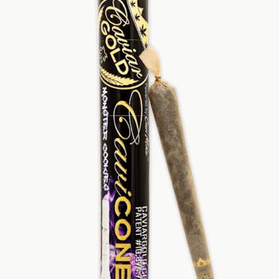 Indulge in the opulent experience of Caviar Gold's Cavi Cone, a carefully crafted 1.5 gram pre-roll filled with top-tier cannabis, expertly infused with 95% distillate, and skillfully blended with kief. Renowned as one of the most potent offerings on the market, it promises an unparalleled high.