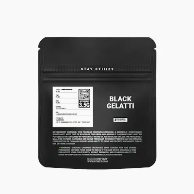 GELATTI | STIIIZY Black Label: Exotic Indoor Flower Taste: Apple, Pepper, Floral Feeling: Euphoric, Energetic, Relaxed This balanced hybrid is bred from Gelato and OG Biscotti strains with the flavors of tart apples, peppery spices and sweet floral complemented by the aromas of herbal spices, flowery earth and gassy citrus pungency. This strain induces uplifting euphoria, energizing focus and invigorating mental clarity to stimulate relaxing happiness, creative inspiration and contentment. The STIIIZY Black Label is the new exclusive line of ultra-premium high-quality flower that is proudly grown and cultivated in state-of-the-art lab facilities based in California. The Black Label is redefining the industry standard by offering a unique and potent experience from expert and master cultivators creating small batch, exotic canna. Small batch cultivation means that each run is a rare opportunity. This line of exotic flowers features one-of-a-kind strains with exceptional flavors from unique crosses expressing new terpene profiles. High trichome density and terpene content means that the canna will smell loud and taste incredible. Experience premium frosty small nugs from the big buds at the best price possible. Break it down, fire it up and go to paradise. *THC Percentages are averages; individual items may vary.*