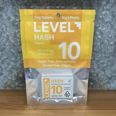 Seeking an edible experience that captures the true essence of the flower? LEVEL 10. Hash tablets deliver just that. Formulated with 10 mg of premium delta-9 THC cold- water hash concentrate, these tablets offer an effect unmatched by other edibles. Highly effective and long-lasting, each tablet is sugar-free, gluten-free, vegan, and contain zero calories. The scored design allows for precise dosing, putting you in control of your experience. Simply swallow with liquid.