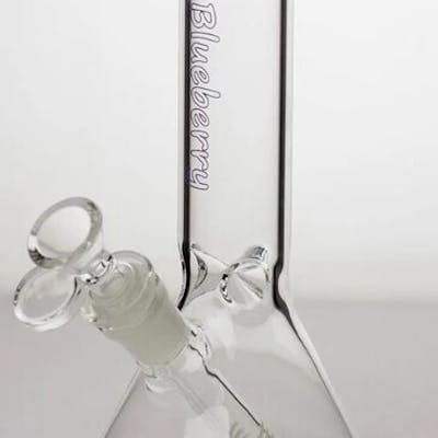 8 inch Blueberry Mini Beaker. This mini bong is equipped with ice pinches, a herb bowl and slitted downstem. The beaker base is wide and sturdy with colour glass accenting the mouthpiece.