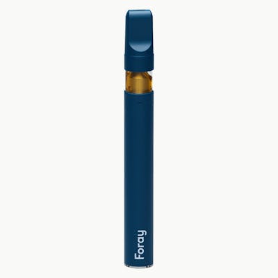 Foray's Indica 0.3 Disposable Vape Pen has fresh, leafy green notes, followed by crisp citrus. Finish is slightly dry and woody with a smooth vanilla sweetness. This high-quality distillate is in a no-leak cartridge system and is rechargeable. Battery charger not included