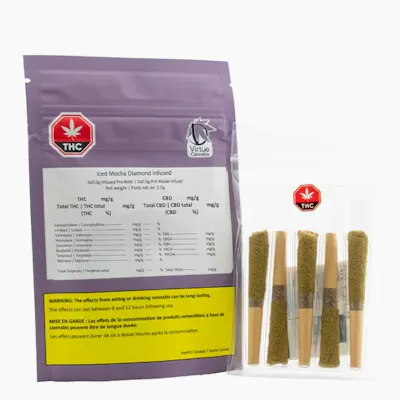 Virtue Cannabis - Iced Mocha Diamond Infused Pre-Rolls LTO 5x0.5- 2.5G