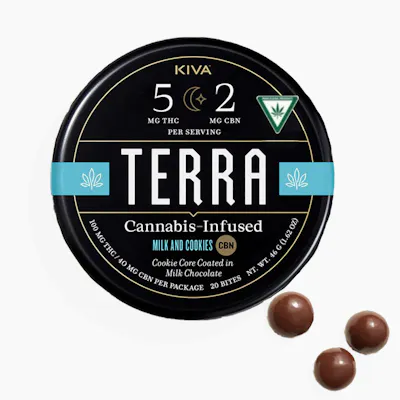 Relax, your favorite bedtime treat is getting the full CBN treatment. A crunchy chocolate cookie core is bathed in sweet, creamy milk chocolate with a hint of vanilla and a touch of sea salt. 5MG of THC and 2 MG of CBN round out the slumber party for a deliciously drowsy effect that will all but tuck you in. Per Bite 5 mg THC and 2 mg CBN Per Tin: 100 mg THC and 40 mg CBN Tin Count: 20 Ingredients: Milk Chocolate (Sugar, Cocoa Butter, Milk, Unsweetened Chocolate, Sunflower Lecithin, Vanilla), Cookie (Unbleached Unenriched Wheat Flour, Sugar, Palm Oil, Cocoa processed with alkali, Salt, Natural Flavor, Sodium Bicarbonate.) Natural Flavors, Cannabis Extract, Cocoa Powder, Gum Arabic, Confectioner's Glaze, Sucrose, Glucose Syrup, Sea Salt Contains: Milk and Wheat Nutritional Info: Calories: 10, Total Carbs: 1g, Total Sugars: 1g