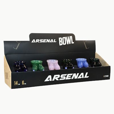 The 14mm Arsenal Boob Bowl Bitties Glass Bowl delivers a cheeky, novelty-driven twist on classic glass bowls with its playful sculpted design and compact form. Each bowl features a rounded, twin-curve shape that adds humor and strong shelf appeal while still offering dependable everyday functionality. Crafted from durable glass, these bowls fit securely on compatible setups and provide smooth, consistent airflow. Packaged in a counter-ready 6-count display, this set is ideal for retailers looking to offer bold, conversation-starting accessories that move quickly at the counter. Specifications Joint Size: 14mm Material: Durable glass construction Design: Sculpted novelty glass bowl with twin-curve form Style: Novelty / character glass bowl Fit: Compatible with standard 14mm