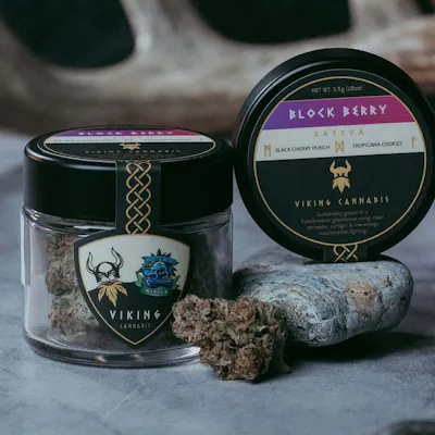 Charted by Viking cultivators in our Dutch greenhouses, Block Berry rewards the bold with dense, olive-green buds dappled in purple and frosted with trichomes. Myrcene leads the terpene profile, opening with earthy cherry and orange before settling into notes of vanilla and blue cheese. At 28% THC, this indica is built for seasoned explorers seeking euphoric, creative, and focused effects — ideal for sparking awareness in artistic pursuits or unwinding into deep relaxation. A potent flower for experienced consumers who demand quality and character in every bowl.