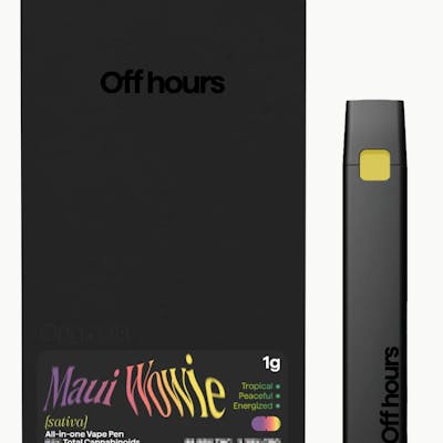 Maui Wowie 1G ALL-IN-ONE VAPE PEN (sativa) Lineage: Hawaiian x ?? Effect: Energetic, Creative, Happy Flavor/Aroma: Tropical, Pineapple