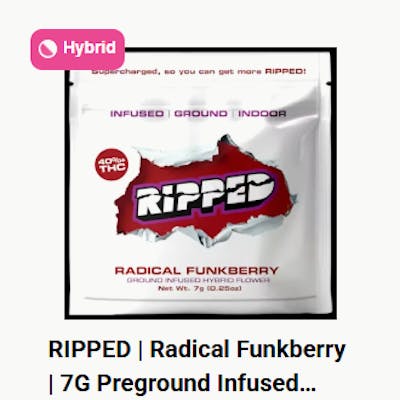 RIPPED RADICAL FUNKBERRY 7G READY TO ROLL Indoor grown Step Into the Funky Wonderland Welcome to a swirl of vibrant color and joyful rhythm! With this 7-gram jar of infused, pre-ground flower, you’re not just lighting up — you’re stepping into the groove of Radical Funkberry, where every spark feels like a burst of candy-colored good times.