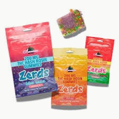 Amnesia | Zerds Fruit Mania | 5 pack 200mg Hash Rosin Gummies w/nerds
