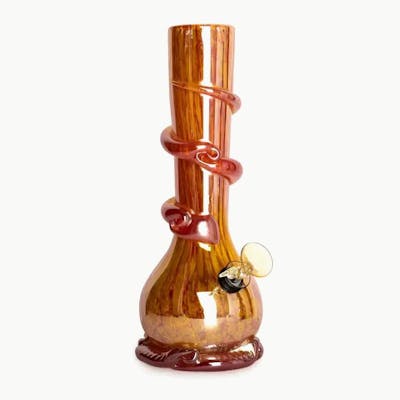 The 10" Kozani Water Pipe from Retro GlassĀ® features a spiral grip and a bright, platinum metallic finish.