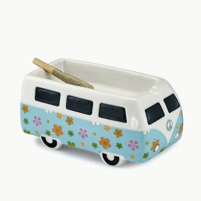 Take a ride down memory lane with this retro Vintage Bus Ashtray and recapture those hippie days of Love and Peace! This cool novelty ashtray is the perfect gift for a stoner friend. This fun adult novelty gift is made of ceramic in the shape of a classic VW bus. It is decorated with a colorful flower burst design and features wheels and dark windows. The ashtray is perfect for all types of smoking devices. On top of the bus is an ashtray for those who enjoy a smoke with a difference. This trendy bus is packaged in a color gift box.