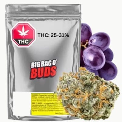 Big Bag o' Buds presents Purple Cherry Punch! This Indica-dominant cultivar is a cross of Sour OG Cheese and Black Cherry Punch, and packs a perfumy and pungent punch with sweet, grape, and berry aromas. Light green buds flecked with orange pistils house dominant terps like beta-caryophyllene, limonene, and humulene. With a THC potency of 25-31%, it’s a value-packed choice for those who appreciate quality.