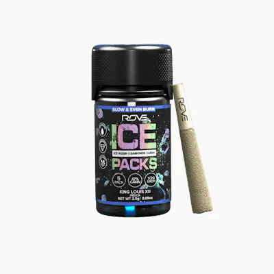 Rove Ice Packs, the world’s first triple-infused preroll. Made with premium-grade flower fully-infused with THCA diamonds and solventless ice hash rosin, they're expertly rolled, then coated with more ice hash. Super smooth and ultra potent, Rove Ice Packs test at over 50% THC. Welcome to the next evolution of prerolls. King Louis XIII commands attention with its majestic pine-forest and earthy aroma that transports you straight to nature's throne! This regal indica delivers a powerful experience worthy of its noble name, making every session feel like you've been granted an audience with cannabis royalty!