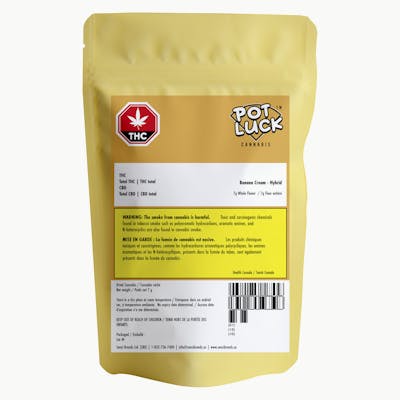 For the discount smoker looking for something different, Potluck is a new take on the “value ounce” – featuring whole flower pouches designed for mixing and matching your way to an ounce. Potluck is available in indica, sativa, hybrid 7 g options. The word “pot-luck” appears in the 16th century English work of Thomas Nashe, and used to mean "food provided for an unexpected or uninvited guest, the luck of the pot." Potluck dinners are events where the attendees bring a dish to a meal - a different meal. Potluck indica-dominant hybrid will launch with Banana Cream and will continually introduce new boutique strains as product sells out. This strain emits strong notes of bananas, with a hint of orange and spearmint, and expresses tight lime green buds. Flavour Profile - Fruit (banana), citrus, mint