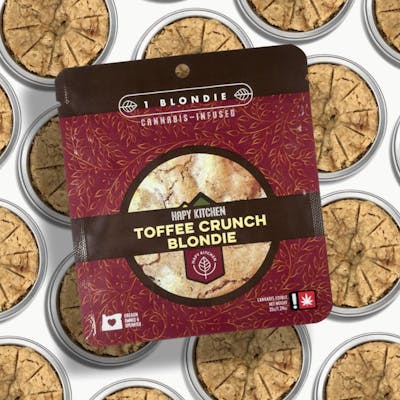Introducing our brand new 100mg Toffee Crunch Blondies! Sister to our award winning brownie, our brown sugar blondie is soft and buttery with a gooey center and bits of crunchy toffee to make this decadent dessert truly one of a kind. We’ve crafted this salty-sweet treat with 100mg of the best quality full-spectrum THC for one truly incredible edible. Enjoy an elevated and delicious cannabis experience with the Hapy Kitchen Toffee Crunch Blondie.